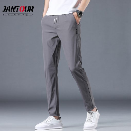 Summer Pants Mens Skinny Stretch Korean Casual Slacks Slim Fit Chino Elastic Waist Jogger Dress Trousers Male Thin