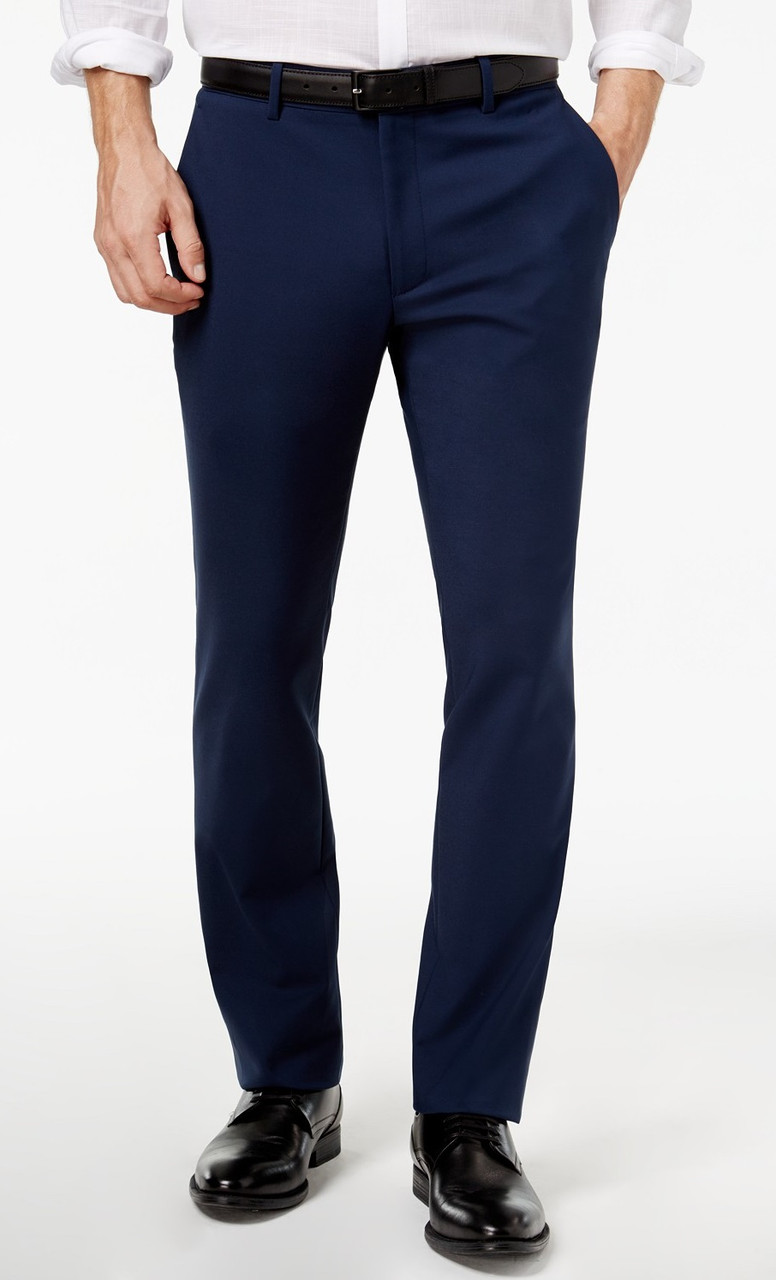 Vinci Mens Navy Blue Flat Front Suit Pants Slacks ON 900